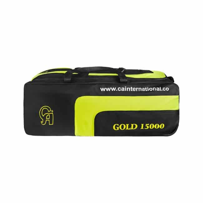 CA Gold 15000 kit bag combines durability and style with ample storage space, designed for the needs of both professional and aspiring cricketers. Featuring a sleek neon green and black color scheme, it ensures your cricket gear stays protected and organized in a premium, high-quality bag.