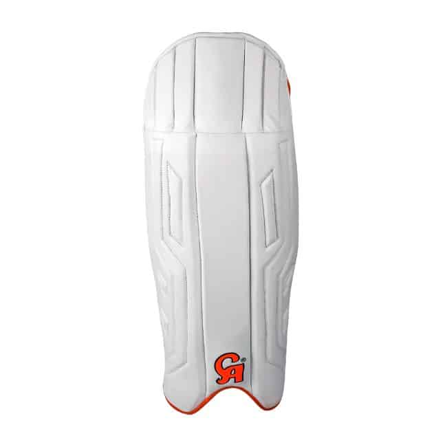 CA Plus 20K Wicket-Keeping Pads, designed in a white and orange color combination, provide lightweight protection, comfort, and flexibility. Built for professional and aspiring wicket-keepers, these pads ensure agility and durability behind the stumps.