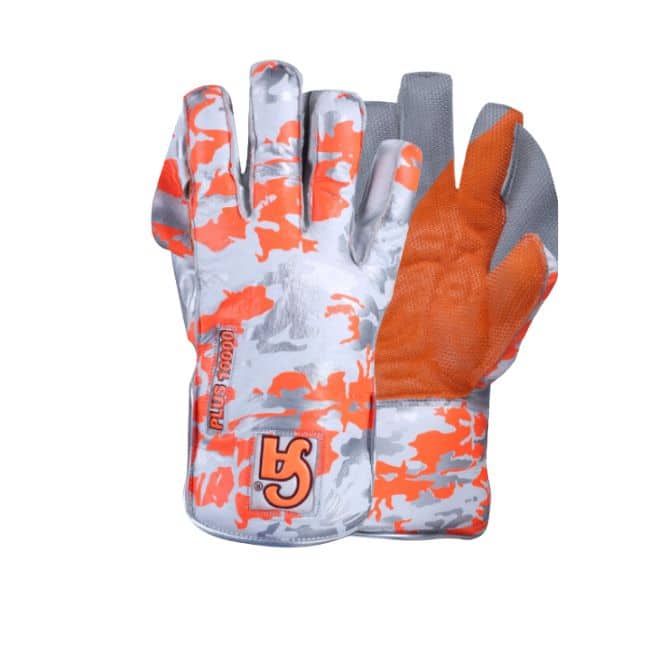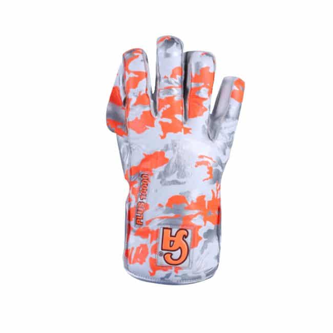 CA Plus 10000 WK Camo Gloves, in orange and silver camo, offer durability, flexibility, and grip with premium leather, octopus grip, and padded cuffs.