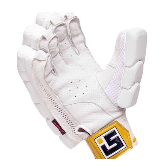Ihsan Black Gold Batting Gloves feature a striking white and golden design, offering superior grip, comfort, and protection for confident stroke play.