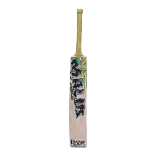 The MB Malik UMZ Hulk Edition Bat, crafted from Grade 2 English Willow, is designed for aggressive play with a mid to low-middle profile and a large sweet spot. This bat offers exceptional power, control, and a striking aesthetic design with textured stickers, perfect for powerful hitting.